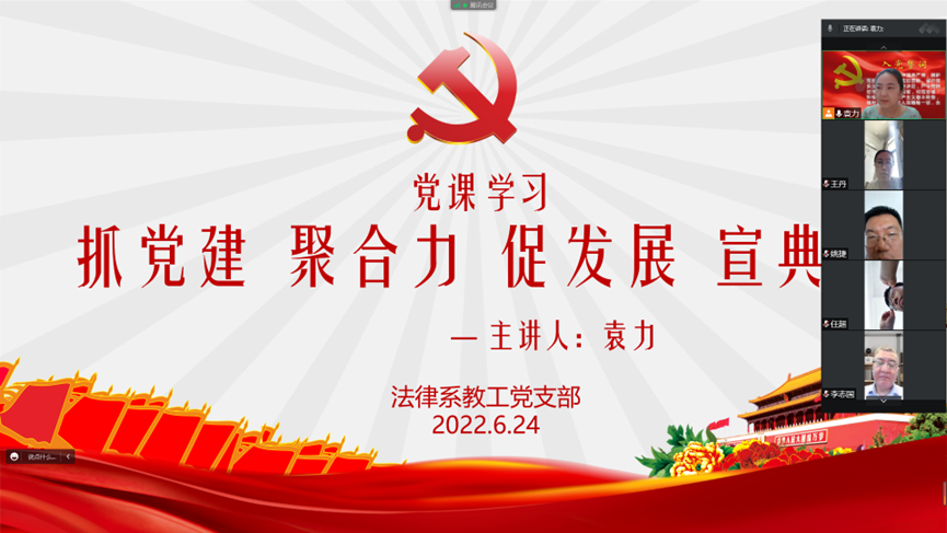 各支部创新形式积极响应。法律系党支部开展了“抓党建、聚合力、促发展、宣典型”专题党课。支部书记带领大家回顾了中国共产党成立101年来团结带领全国各族人民进行革命、建设、改革的光辉历程、辉煌成就和宝贵经验,统一思想、凝聚力量、不忘初心,引导大家更加坚定地维护党的领导,并号召党员教师向近期在教学科研、就业指导、招生咨询以及疫情防控等方面表现突出的李志国、王俊梅等老师学习,牢记教书育人的责任与使命,将党的要求贯彻落实到各项中心工作中,以实际行动和丰硕成果迎接党的二十大。