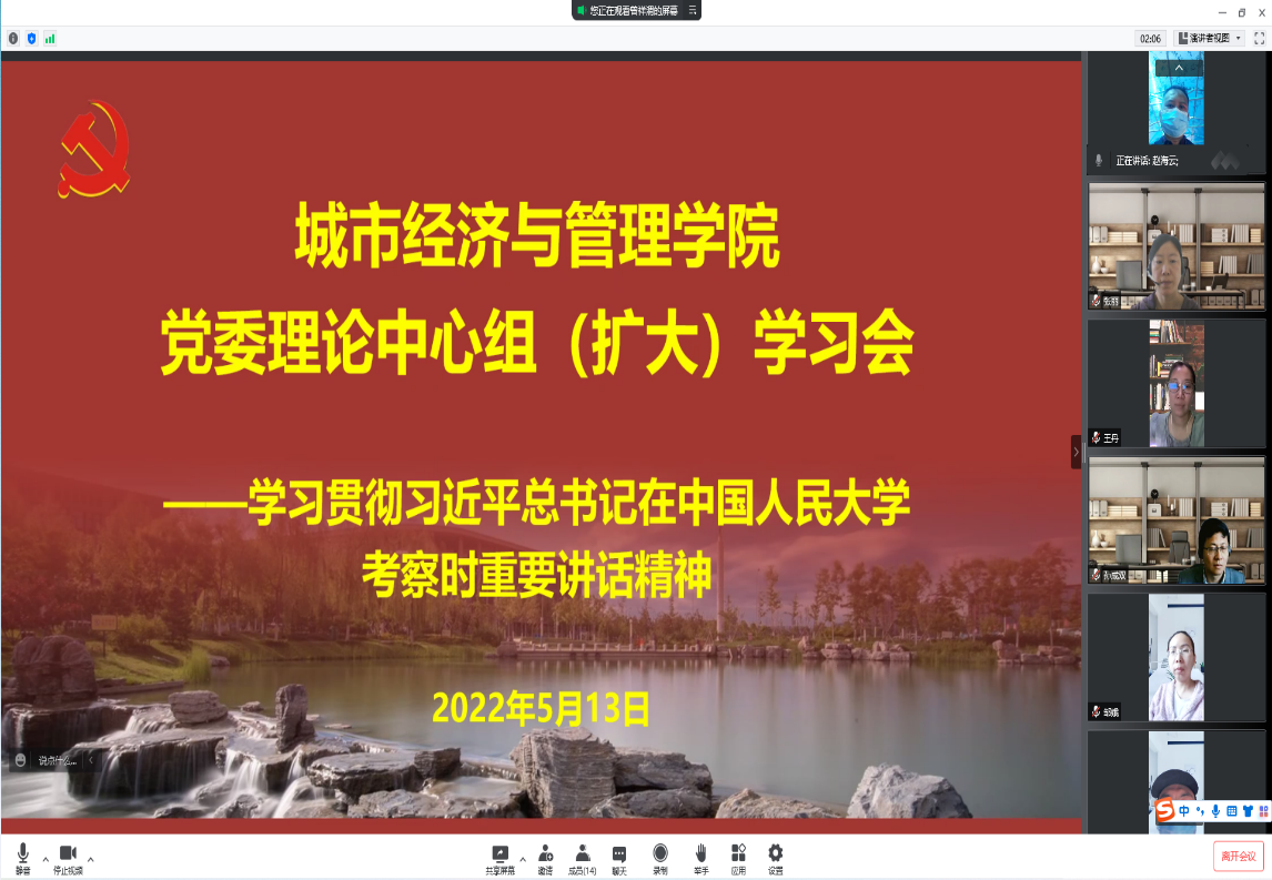 会上,赵海云同志领读了总书记讲话新闻通稿,就总书记讲话的重点内容进行了解读和分析。并强调,在习近平总书记4月25日考察中国人民大学发表重要讲话后,学院党委立即行动,第一时间将相关新闻和视频资料发给全体党委委员、各基层支部,号召大家利用学习强国等开展了自主学习。在此基础上,今天再次组织大家开展集体学习,希望进一步深化和领会总书记讲话精神的丰富内涵,学做结合,将讲话精神贯彻落实到教学科研实际当中。