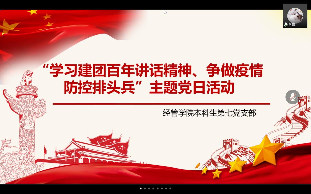 本科生第七党支部召开“学习建团百年讲话精神、争做疫情防控排头兵”主题党日活动
