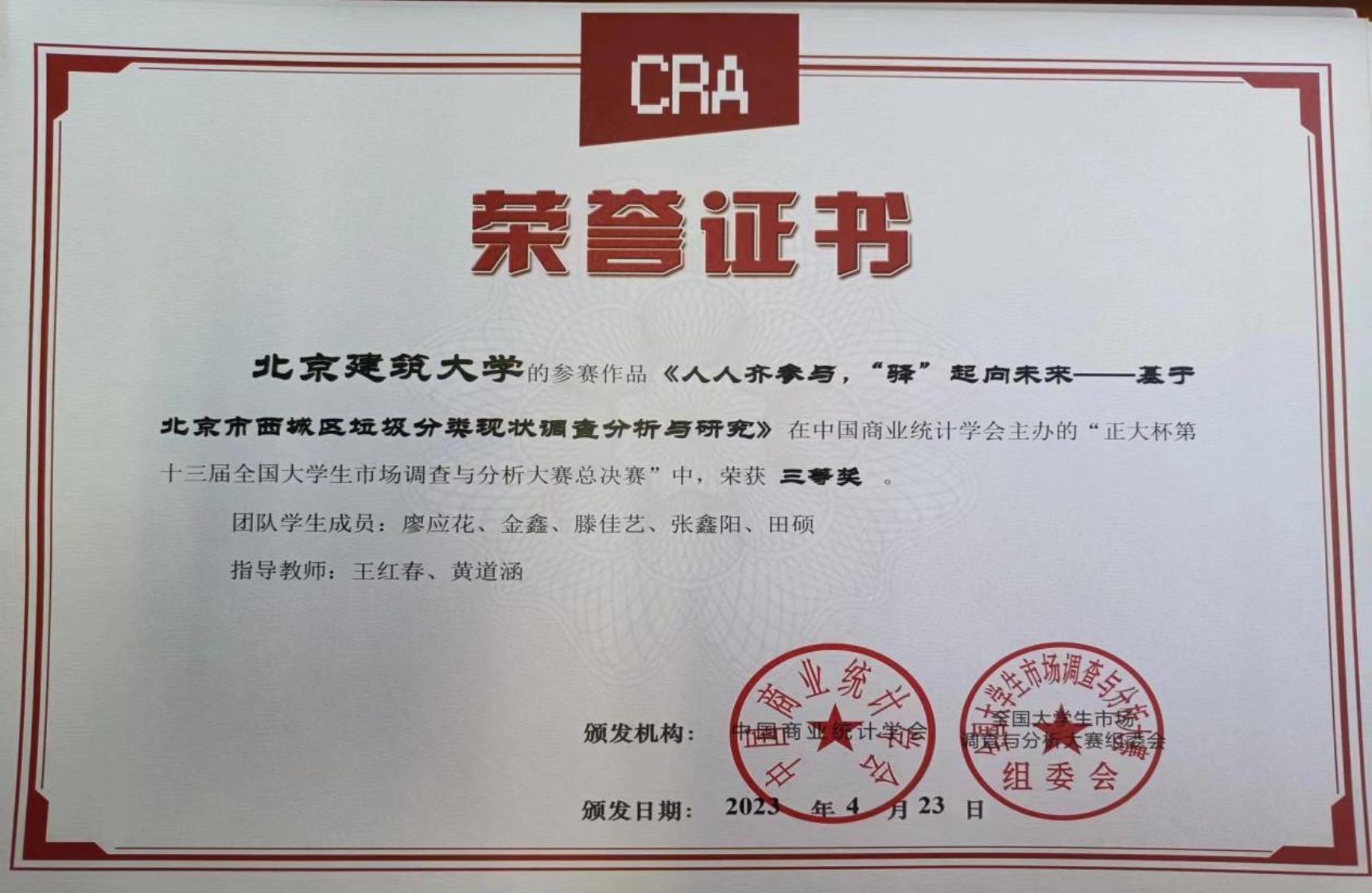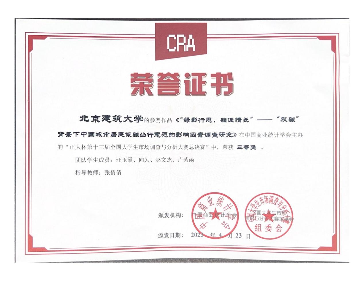 学院2支学生团队在“正大杯”第十三届全国大学生市场调查与分析大赛中获全国三等奖