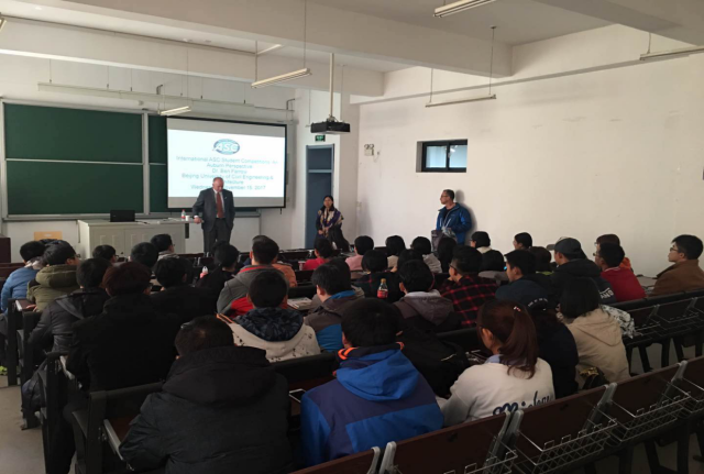 在介绍完竞赛信息后,Farrow教授展示了奥本大学的获奖参赛团队合影。2016年 11 月在英国雷丁举行的第八区学生竞赛,奥本/伯明翰城市大学和奥本/约翰摩尔斯大学分别获得第一名和第二名。2017年 3 月在德克萨斯州达拉斯举行的 5 区学生大赛,奥本/伯明翰城市大学队获胜。最后Farrow教授回答了老师以及同学们对于奥本大学和国家竞赛的疑问和想了解的信息,强调“Engaging Learning”的重要性,并且表达了对我校大学生去奥本大学学习、参加竞赛的欢迎以及希望。