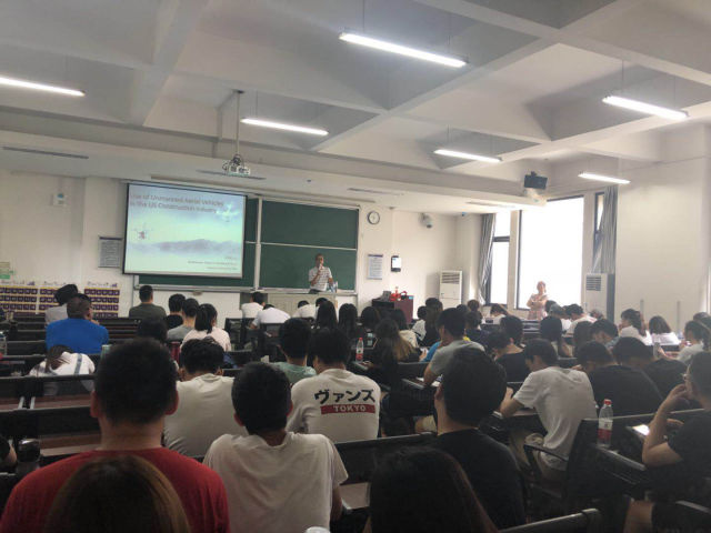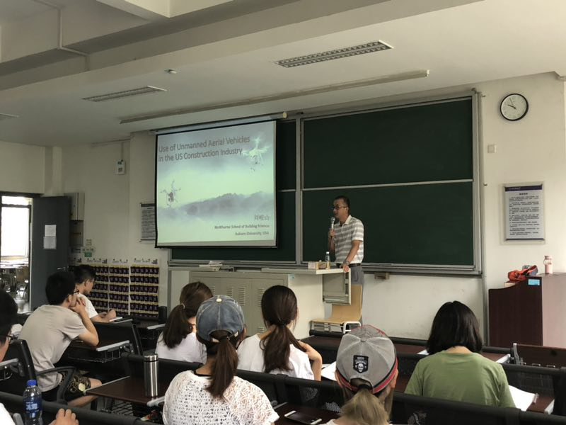 2018年6月6日上午十点,美国奥本大学教授教授刘峻山在基A221为百合漫画 的师生开展了一场关于无人机在美国建筑业中的应用的讲座。刘峻山教授来自美国奥本大学麦克沃特建筑学院,主要研究领域包括BIM技术、数字可视化、建筑安全、建筑业3D激光打印等。