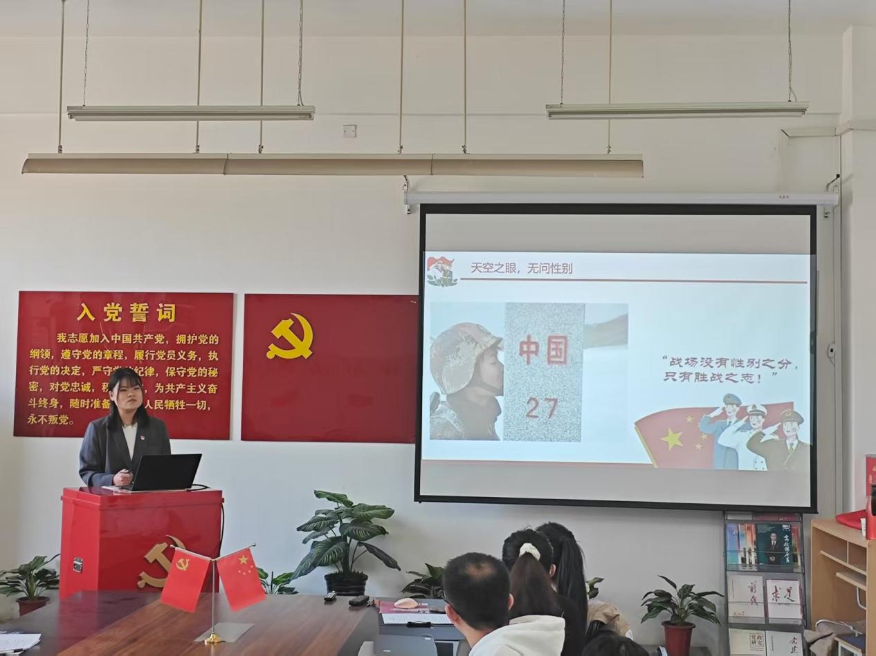 工商管理研究生党支部的马奔以“山河所系,使命必达——以青春织就强国经纬”为题,讲述了自己在天山雪线驾驭无人机巡边守防,在东经86°的戈壁风沙中淬炼精兵,以“巾帼铿锵”浇筑精神界碑,践行“只有荒凉戈壁,没有荒凉人生”的戍边豪情。