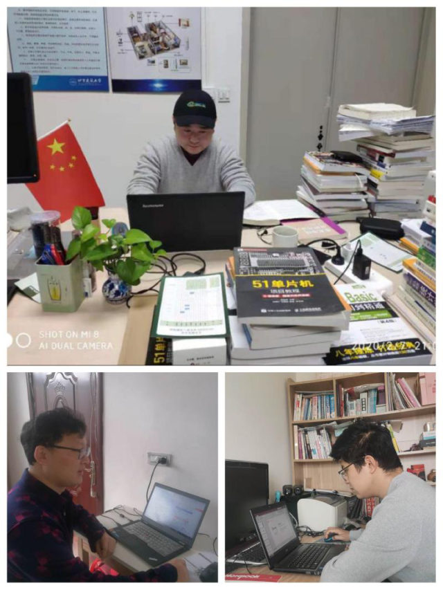 这是一支年轻而富有活力的队伍,自成立以来,技术支持组和青年突击队的李明、王硕、康飞等教师,在周霞副院长的领导下,为了尽快筛选出稳定可靠、技术先进的在线教学平台,发动家庭成员配合演练,多角度反复模拟教师、助教、学生及管理人员等多个角色,使用笔记本电脑、台式机、手机等多个终端设备,提前调试了超星学习通、雨课堂等在线教学平台,和各类直播平台,并编写了简洁实用的操作说明书发给任课教师,确保了技术培训在线教学的顺利进行。