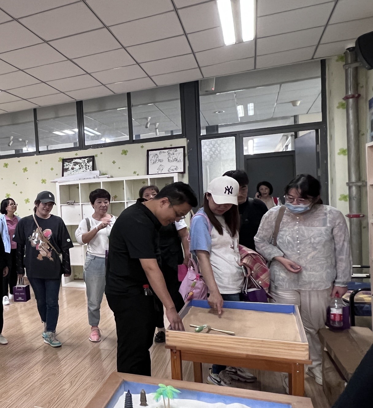 随后社工系主任晁霞老师陪同参观了社会工作系实验室。并和社工系学生一起进行了团建活动。