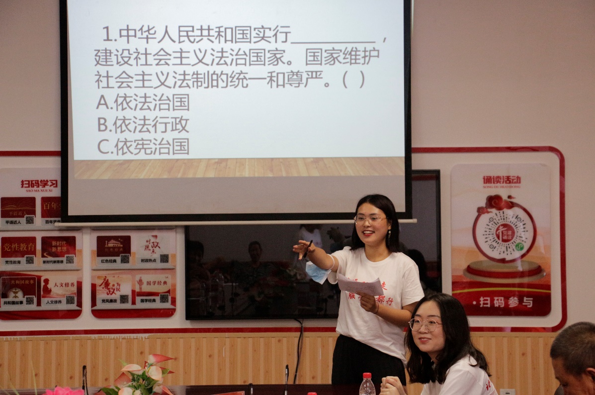 为在村内营造良好的法治文化环境,并调动村民们知法、懂法、学法的积极性,实践团队在后黑龙庙村党员活动室开展了普法知识竞答活动,村民们积极响应,踊跃参加,氛围热烈。前来参加竞答的村民既有上了年纪的大爷大妈,也有还在上学的小女孩。在普法竞答活动中,竞答题目内容与村民切身关注的各项法律问题相契合,通过此种竞答的方式,开展普法宣传,丰富了弘扬法治的途径和方式,既让法治精神深入村民内心,又解决了他们在生活中遇到的法律疑问,增强了法律意识。