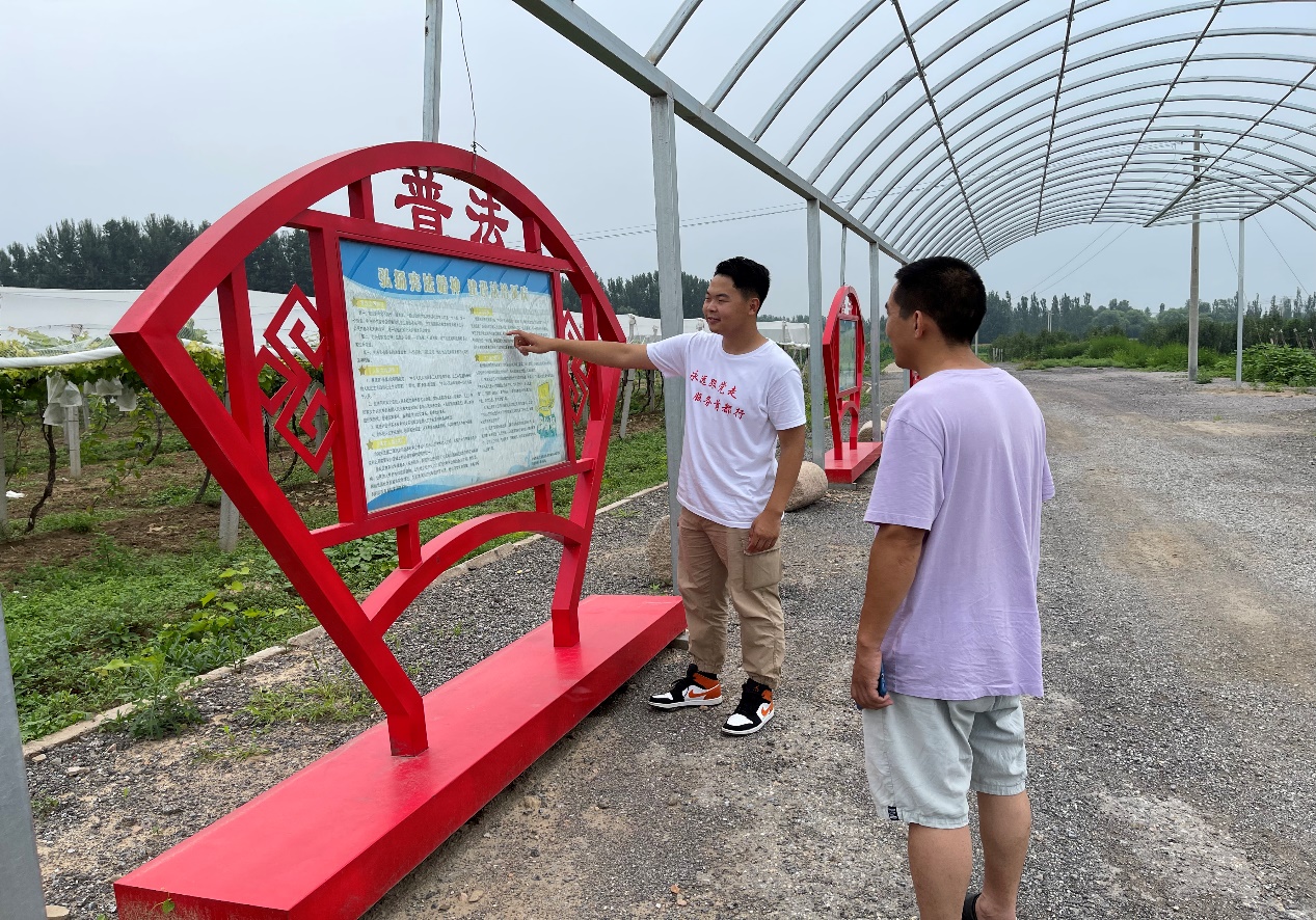 为深入学习宣传贯彻习近平法治思想,做好第八个五年法治宣传教育工作,进一步加大全民普法力度,实践团队用村里的广播站通过广播的方式进行普法,并前往绿野地葡萄园实地宣传普法。根据村民的实际需求,对民法典中与村民切身利益相关的条文进行相关法律解读,帮助村民了解生活中经常会遇到的法律问题。实践团队用广播站广播、实地入户到家的方式进行普法,让村民不用出门,不用离村,不管在家休息还是下地劳作,随时随地学习法律知识。