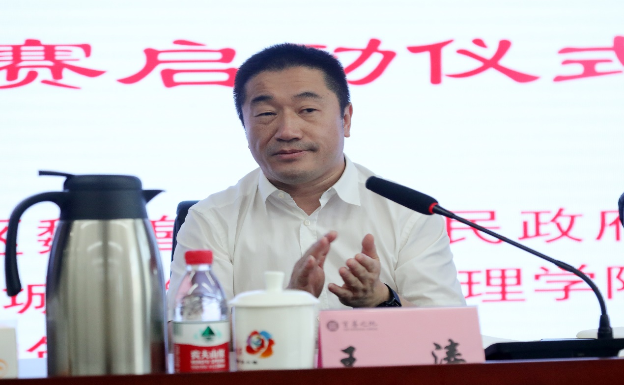 仪式上,王涛镇长首先致欢迎辞并讲话,他围绕党建引领社会工作在基层生根发芽的重要意义进行了阐述,首先,要抓住机遇,依托校地共建,学生走出校园,深入了解农村发展现状,真正了解百姓需求,挖掘农村治理难题,发挥专业特长,为破解乡村治理难题提供优秀方案。其次,要充分发挥资源优势,将理论与实践相结合,切实将专业社会工作理论引入农村基层社会治理,为深入推进乡村治理工作提供专业指导和智力支持。最后,强调了未来要建立镇村两级社会工作服务机构,以“专业+本土”相结合模式,切实实现为农村特殊人群及农村社区发展服务,从而有效促进乡村振兴。最后表示,对于学生在乡村的调研实习工作提供大力支持,并预祝此次大赛圆满成功。