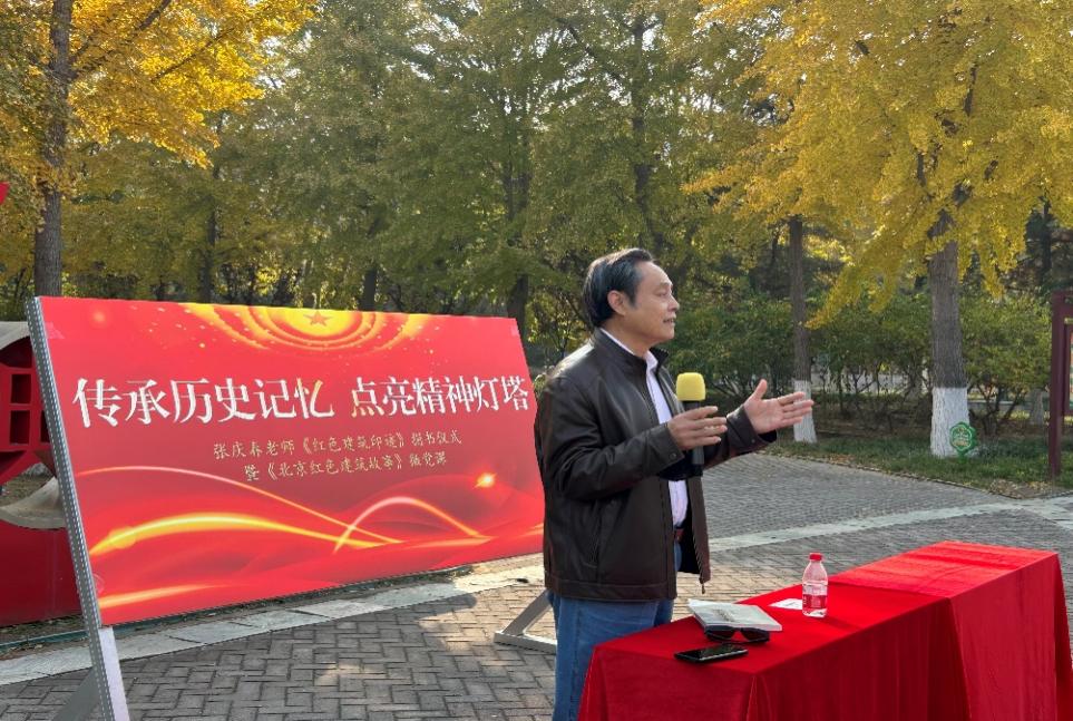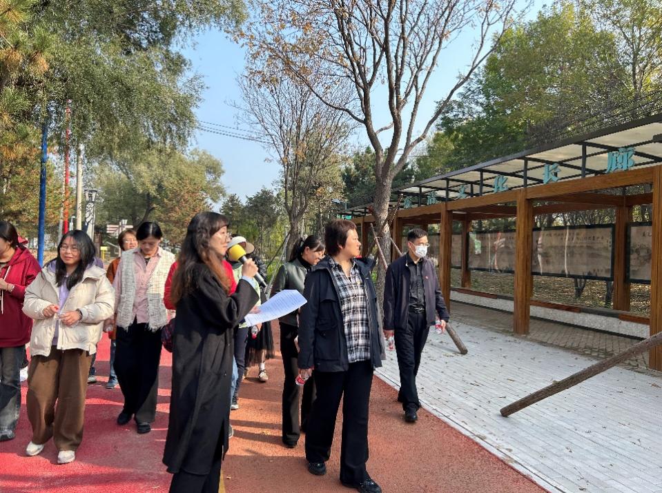 四是联合推进主题教育活动。2024年10月,学院党委书记赵海云带领师生赴清源公园开展“清风伴我行、廉洁守初心”党风廉政主题教育活动,并邀请学院退休教师、学院关工委副主任张庆春老师,为学院师生和公园职工讲授了《北京红色建筑故事》党课,通过沉浸式观摩和户外党课特殊授课形式,引导青年学生们坚守初心,牢记使命。