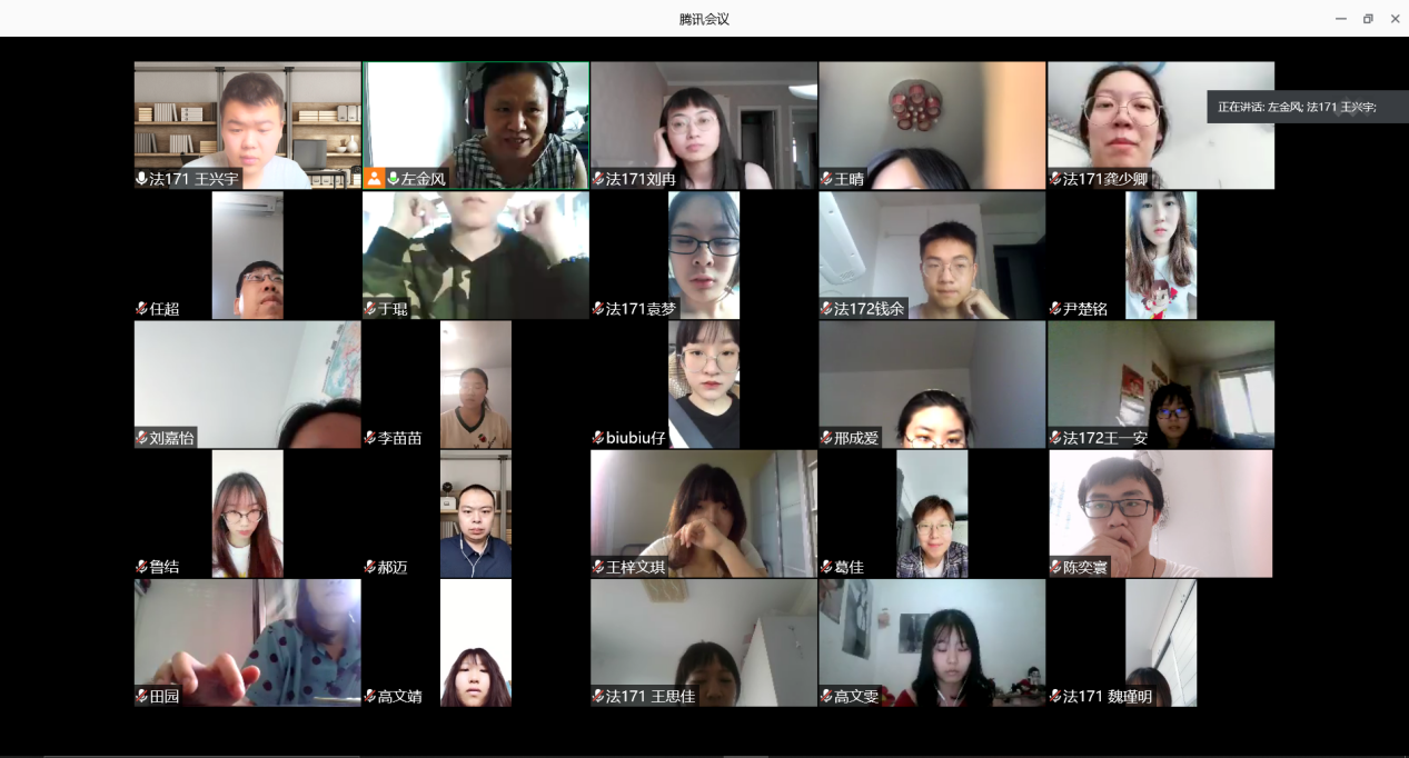 法律系组织2021届全体学生在腾讯会议中展开就业推进会。院党委副书记郝迈、法律系主任左金风,17级班主任、辅导员参以及法17级(2021届)64名学生参加了本次会议。会议由左金风主持。