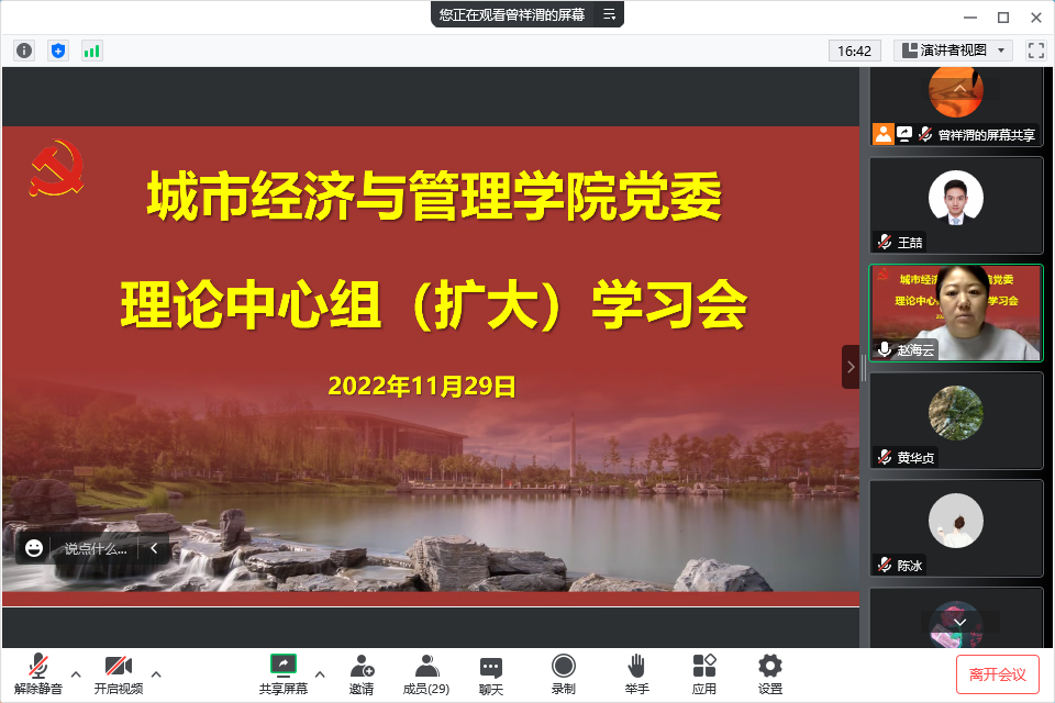 随后,与会的中心组成员、科级干部和党支部书记就学习内容进行专题发言和自由交流,结合学院与自身实际,围绕党的二十大精神的学、思、悟、行进行了讨论。