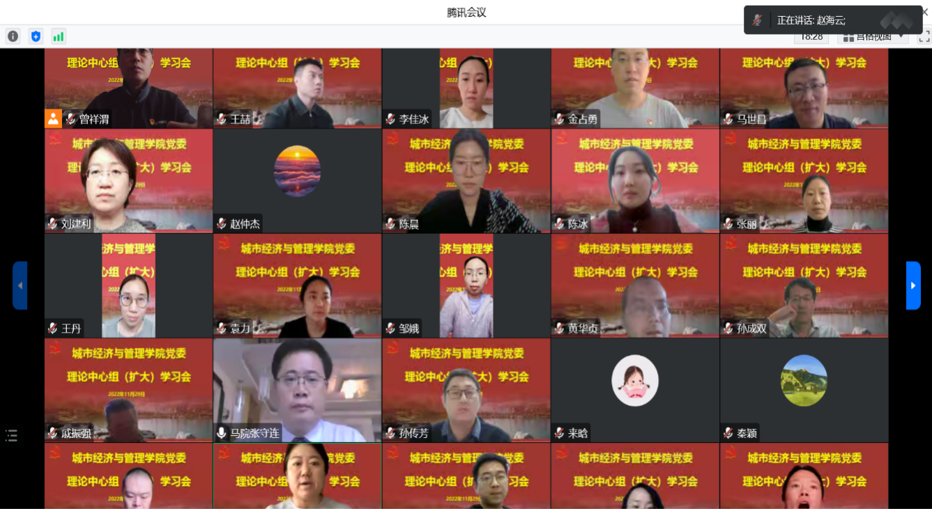 最后,赵海云总结强调,深入学习宣传贯彻党的二十大精神,是学院当前和今后一段时间的首要政治任务,接下来,各党支部、各系、各班团组织要按照学校的实施方案,分层分类开展好学习贯彻活动,理论学习中心组成员要先学一步,学深一步,深入所在支部、单位做好示范带动。此外,党的二十大精神的学习贯彻,要做到入脑、走心、见行动,主题教育要进支部、进班团、进课堂、进科研、进文章、进项目,要把党的二十大精神的学习贯彻与学科专业建设、课程思政、人才培养等有机融合,协同推进。