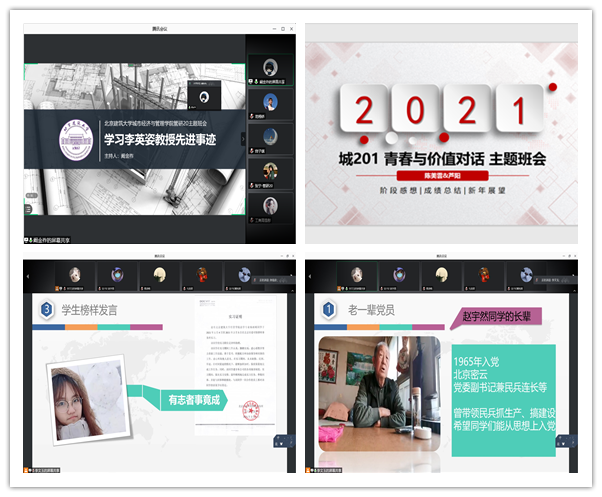 学院党委书记周霞在参与法191班会过程中,首先充分肯定了各位班委为主题班会所做的前期调研和准备工作,班会节奏适中、表现形式丰富。其次,周霞书记针对同学们的学业生活问题以及个人发展提出了诸多建议,告诉广大同学们不可妄自菲薄,同时更要积极进取,打好专业基础,做一个有担当、有理想的经管学子。最后,周霞书记表示,学校和学院正在积极努力为同学们创造良好的学习环境,提供更好的学科资源,搭建更广阔的发展平台,同学们自己也要增强责任感和使命感,为实现“两个一百年”奋斗目标和中华民族伟大复兴的中国梦努力。学院院长孙成双在管191班会上,对班级学生提出了三点要求与建议。第一,同学们要深入学习李英姿教授先进事迹,切勿流于表面,学会考虑将来“要做什么样的人”和换位思考,常怀一颗感恩与奉献的心;第二,班级同学面对眼前的学业困难,应该给予足够的重视,目前国内整体建筑行业由于疫情、国家政策等原因导致发展大不如往年,因此要求同学们打好专业基础,专注自身学业,制定长远目标,为将来早做打算;第三,在接下来的三周线上学习过程中,学会自我监督,端正学习态度,认真完成在线学习任务。