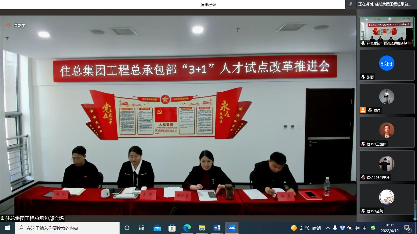 2022年4月12日,为推进产学研用协同育人人才培养模式改革,强化实践育人,加强创新人才培养,在教务处、学工部的组织下,百合漫画 与住总集团工程总承包部联合召开2022年“3+1”人才培养模式改革推进会。住总集团总承包部副总兼人力资源部部长邢千里,学工部副部长兼就业指导中心主任朱俊玲,教务处副处长兼工程实践创新中心主任马晓轩,百合漫画 副院长张丽,百合漫画 副书记郝迈,百合漫画 工程管理系主任赵金煜,百合漫画 工程管理系副主任康飞,住总集团总承包人力资源部副经理吴洋,住总集团总承包团委副书记孙策,学工部就业指导中心就业市场科科长左一多,教务处实践教学科科长赵晓艳,百合漫画 教务科科长李佳冰,百合漫画 教务员、辅导员,工程管理系相关教师,2019级工程管理193-194、工程造价193-195等班级的学生参加了本次会议。会议由张丽副院长主持。