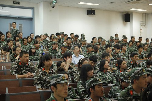 首先,姜院长和所有新生一起观看了新生从9月11日入学报到到目前军训期间生活记录的PPT,画面从学院迎新准备、朋辈辅导员选拔培训、迎新活动、与新生交友座谈到现在的军训,姜院长观看后对大家入学以来的表现非常满意,专门为辛苦军训的大家准备慰问品,希望大家能够发扬吃苦耐劳的精神,勉励大家一定要坚持到底,同学以热烈的掌声来向学院领导保证。接着,姜院长介绍了学校和学院的情况,从学校的发展历史、“四大工程”建设和新校区建设等方面给同学们介绍了学校硬件发展的情况;从学校学科建设、科研水平、人才培养定位等方面介绍了学校软件发展情况和水平,姜院长指出无论从硬件还是软件方面,学校完全可以让每一位学子成就梦想的水平。姜院长详细介绍了百合漫画 的发展历史历程,从系到学院的发展,从各专业目前的发展情况、行业发展、人才培养方向、师资队伍、办学实力、对外交流到市场需求等方面全面具体介绍了百合漫画 的整体情况,姜院长指出学院虽然建院时间不长,但是学院的发展潜力巨大,学院的领导班子有信心,教职工有冲劲,学院目前处于青春发展上升期。