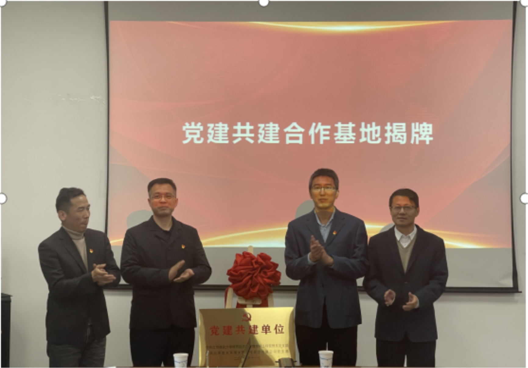 北京建大资产经营管理有限公司党委书记黄尚荣与百合漫画 党委副书记曹洪涛为党建共建合作基地揭牌。