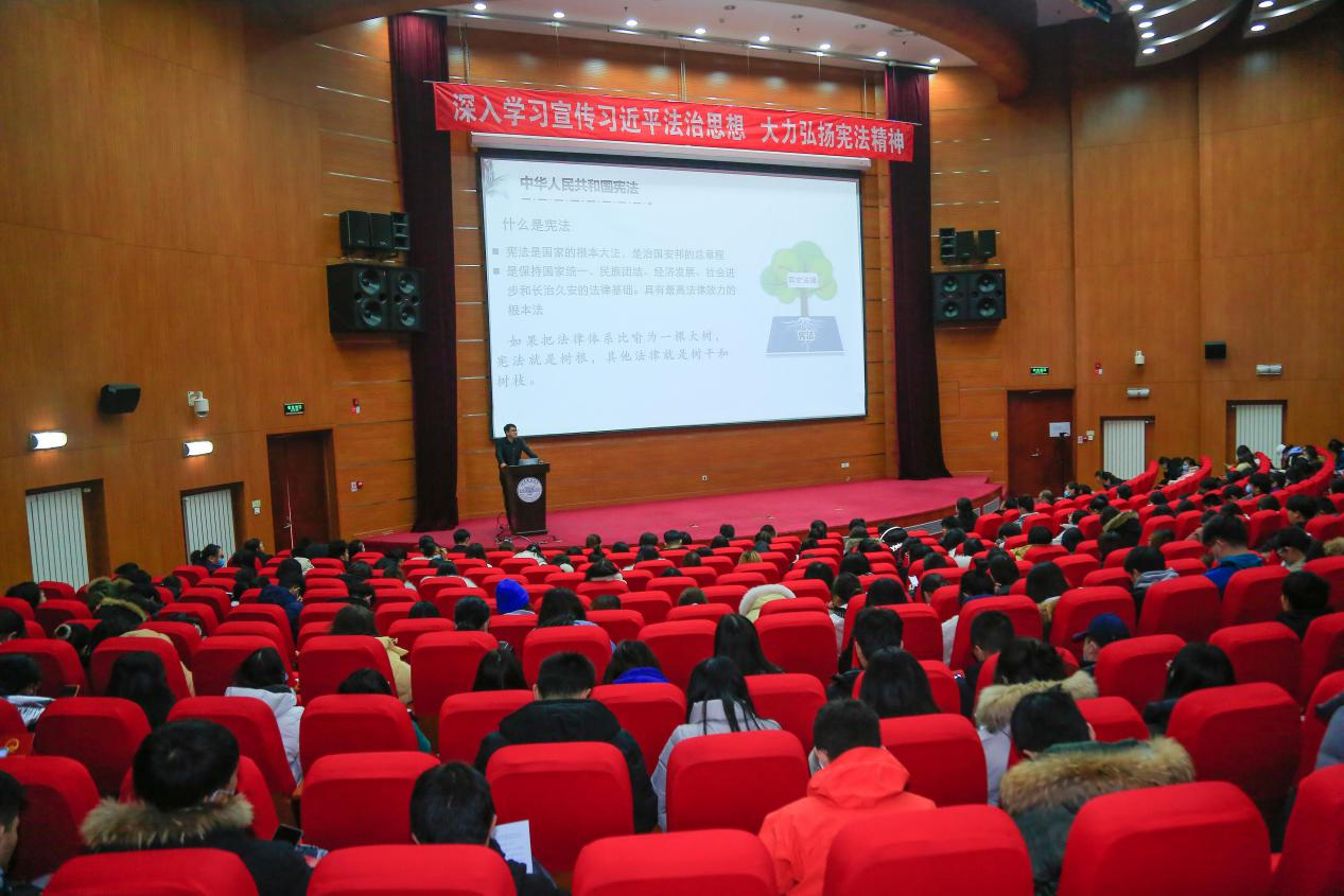 最后,法律系教师马龙君以《依宪治国与宪法法治》为主题作了专题讲座,从我国宪法的发展历史和基本内涵为师生讲解国家治理与宪法修正案之间的逻辑关系。
