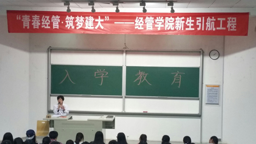 新生引航工程之入学教育面面到”在大兴校区学院楼A座101教室如期开展。与会的领导与老师有学工部副部长冯永龙、学院党总支副书记魏强、大兴校区校医务室贾瑞珍、学院教务员刘玥老师、11级辅导员左一多、13级辅导员吴雨桐、14级辅导员曹晓云、学院学生会主席杜婉杰。