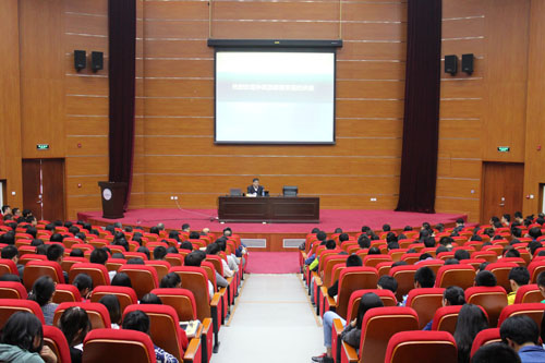 姜军院长,文法学院孙希磊院长,及两院师生近500人齐聚报告厅,认真聆听了报告会。