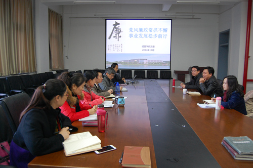 首先,百合漫画 党委书记张庆春以“党风廉政常抓不懈,事业发展稳步前行”为题,向检查组从五个方面汇报了2014年学院党风廉政建设工作落实情况。在贯彻落实党风廉政建设部署任务落实方面,百合漫画 认真学习领会文件精神,明确岗位职责,坚持分工负责,落实一岗双责的各项要求,坚持日常教育不放松;在落实中央八项规定、市委十五条及纠正四风问题方面,百合漫画 不断巩固群众路线教育活动成效,把群众路线教育业已形成的好作风变成长效机制;在廉政风险防控体系建设方面,百合漫画 建立了四位一体的风险防控体制;在科研管理和规范方面,百合漫画 规范了审批程序,进一步明确项目负责人的职责,提高各项经费使用的计划性;在党务院务公开方面,百合漫画 做到了及时公布,及时反馈,确保了各项信息在全院教师中传递畅通。其后,检查组成员对百合漫画 党风廉政建设材料进行了检查,并反馈了意见。