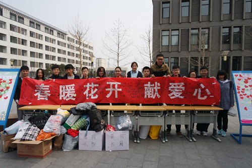 2015年3月18日——19日,志愿者们在大兴校区食堂北门展开了“春暖花开•献爱心” 现场捐赠活动,在捐赠过程中,许多学生将自己不穿的衣服和不用的书籍纷纷捐献出来,很多同学也在明信片写下了对受助者的关切话语及鼓励,大家用五颜六色的爱心贴,共同完成了一张张充满爱心的海报。同学们的爱心行动深深地感染了参与活动的每一个人,这样一份小小的爱心,期望可以代表我们的心意传递到需要帮助的人手中,点燃他们的希望。