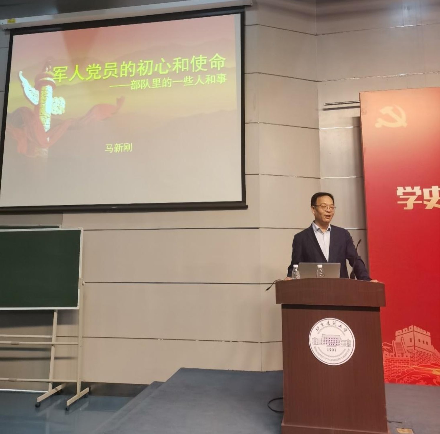 本次主题党课学习活动有幸邀请到了军转干部马新刚同志,为师生党员分享了其个人和身边军人党员成长发展的点滴故事。马老师从初出茅庐的农村娃,靠着自己的勤奋和敬业,实现了个人的蜕变与成长。他26年的军旅生涯里,历任总参某部干部、解放军生活杂志编辑、总部机关干部。他自学摄影技术,勇担宣传重任,多次参与国内重大典型事件和人物的宣传工作,用相机记录了一位位优秀部队干部忠于职守的画面,每一位干部的先进事迹在他的笔下描述的淋漓尽致。课程中,马老师着重介绍了卓张明、钟玉征、臧雷三位优秀军人的感人事迹,他们热爱自己的岗位,忠于党和国家,在自己的岗位发光发热,挥洒汗水,燃烧青春,忠诚、勤奋、敬业、奉献是他们共同的人生关键词!初心与使命是他们不懈奋斗的共同源泉!这一个个可歌可泣的红色故事,激发了与会师生的爱国热情,凝聚了新一代的奋进力量。