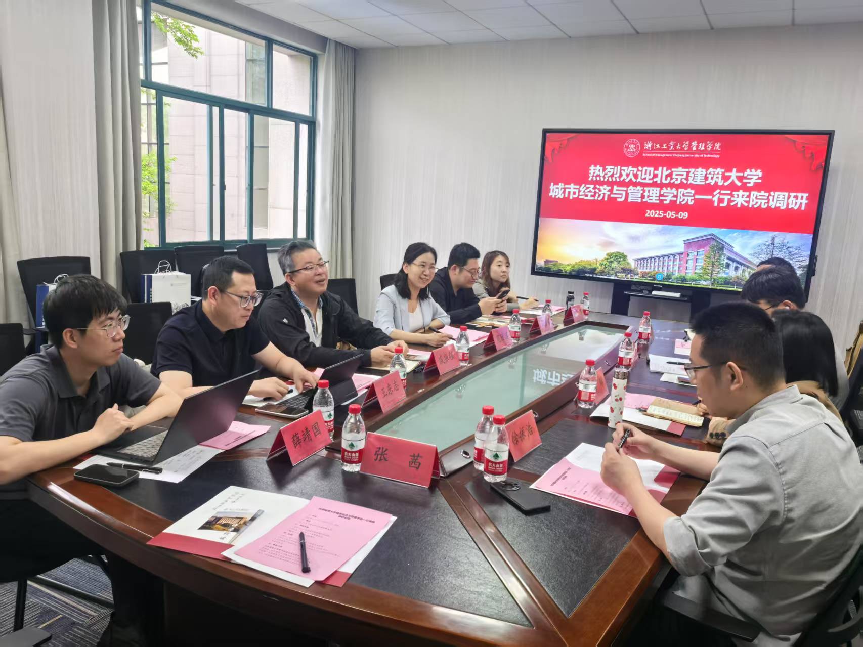 2025年5月9日上午,百合漫画 副院长花园园、MEM中心主任戚振强、科研办公室主任王东志、专任教师薛靖国、团委书记孙传芳等前往浙江工业大学管理学院调研交流。浙江工业大学管理学院副院长曹柬、工程管理系主任高辉、工程管理系副主任王兵、MBA项目中心主任助理徐振浩出席座谈。