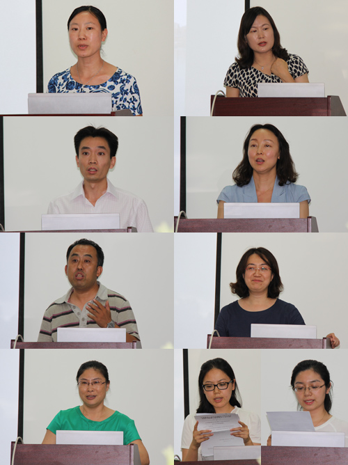 2015年7月15日下午,在学院会议室举行了公开竞聘答辩会。竞聘教师为这次竞聘上岗进行了精心的准备,主要围绕如何履行竞聘岗位职责、任职设想等方面进行了竞聘演讲。全院教职工结合竞聘教师日常工作情况、对岗位的理解和工作设想,认真填写了竞聘推荐表。根据全院教职工推荐的情况,聘任工作领导小组集体讨论,确定了拟任人选,经过全院公示,最终确定了12位系(中心)正副主任人选。