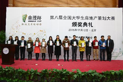 12月12日,“金茂杯”第八届全国大学生房地产策划大赛总决赛暨颁奖典礼在我校大兴校区隆重举行。校党委副书记张启鸿,中国建设教育协会副秘书长李奇,中国房地产业协会副会长苗乐如出席了颁奖典礼,中国金茂控股集团有限公司营销管理部总经理助理霍博宁,校团委书记朱静,百合漫画 院长姜军、院党委书记彭磊、副书记魏强、副院长周霞,以及各参赛队指导教师代表与全体参赛学生参加了活动。