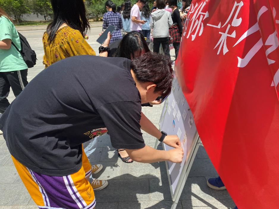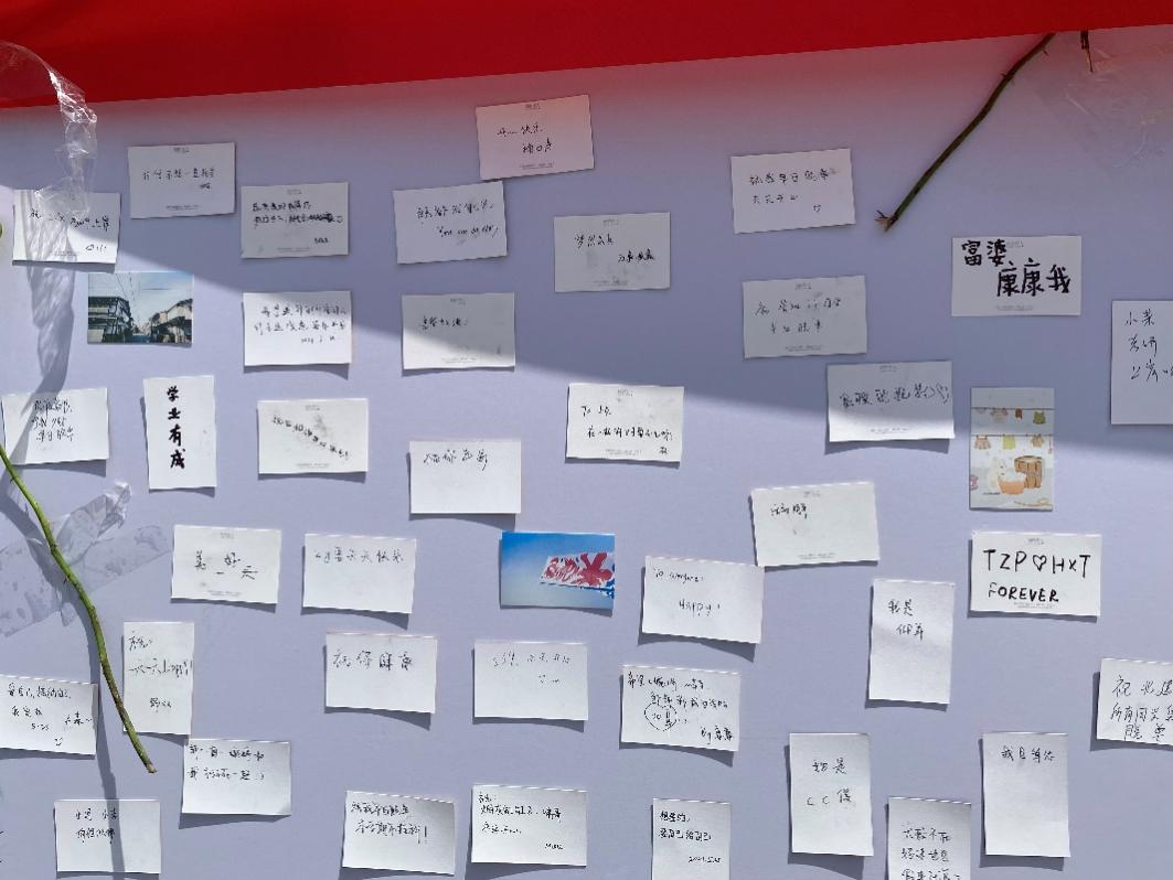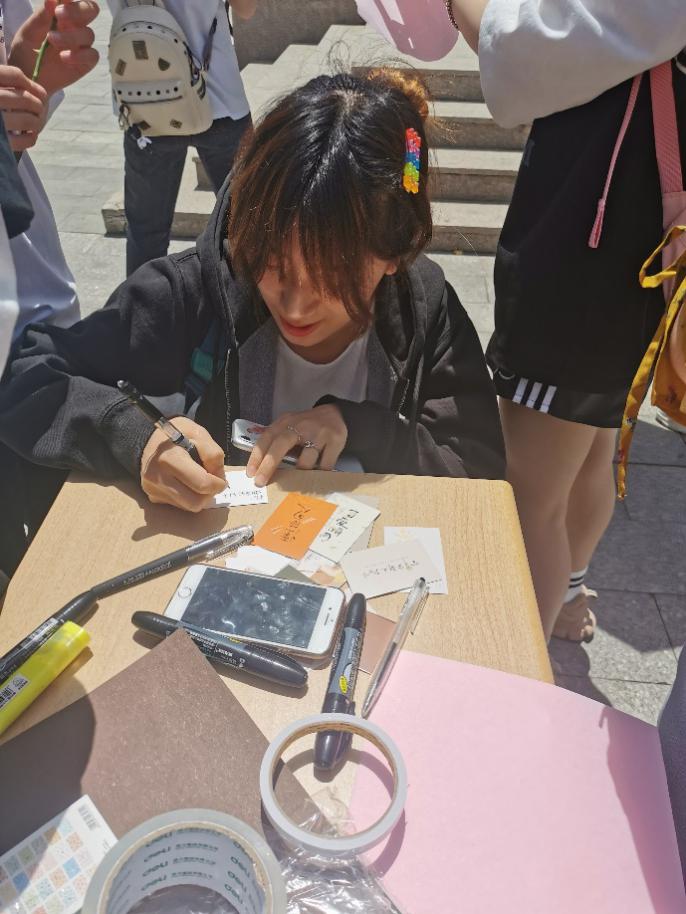 活动很快开始啦,午间空闲,来往的同学大多被人偶吸引,纷纷在精美的小卡片上写下了对自己亦或是对身边人的美好祝福。