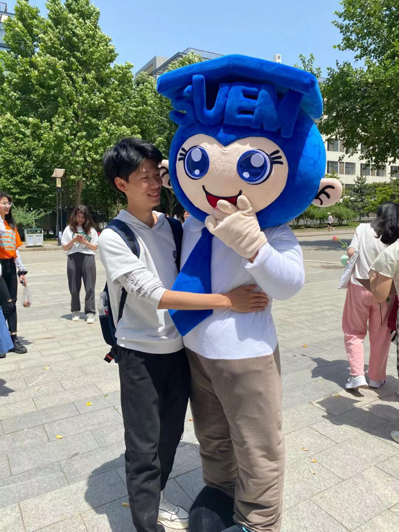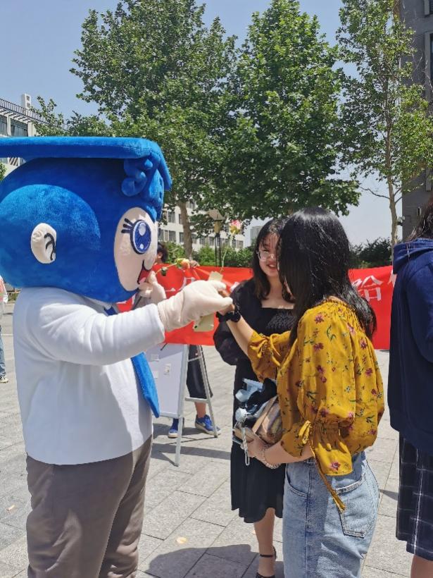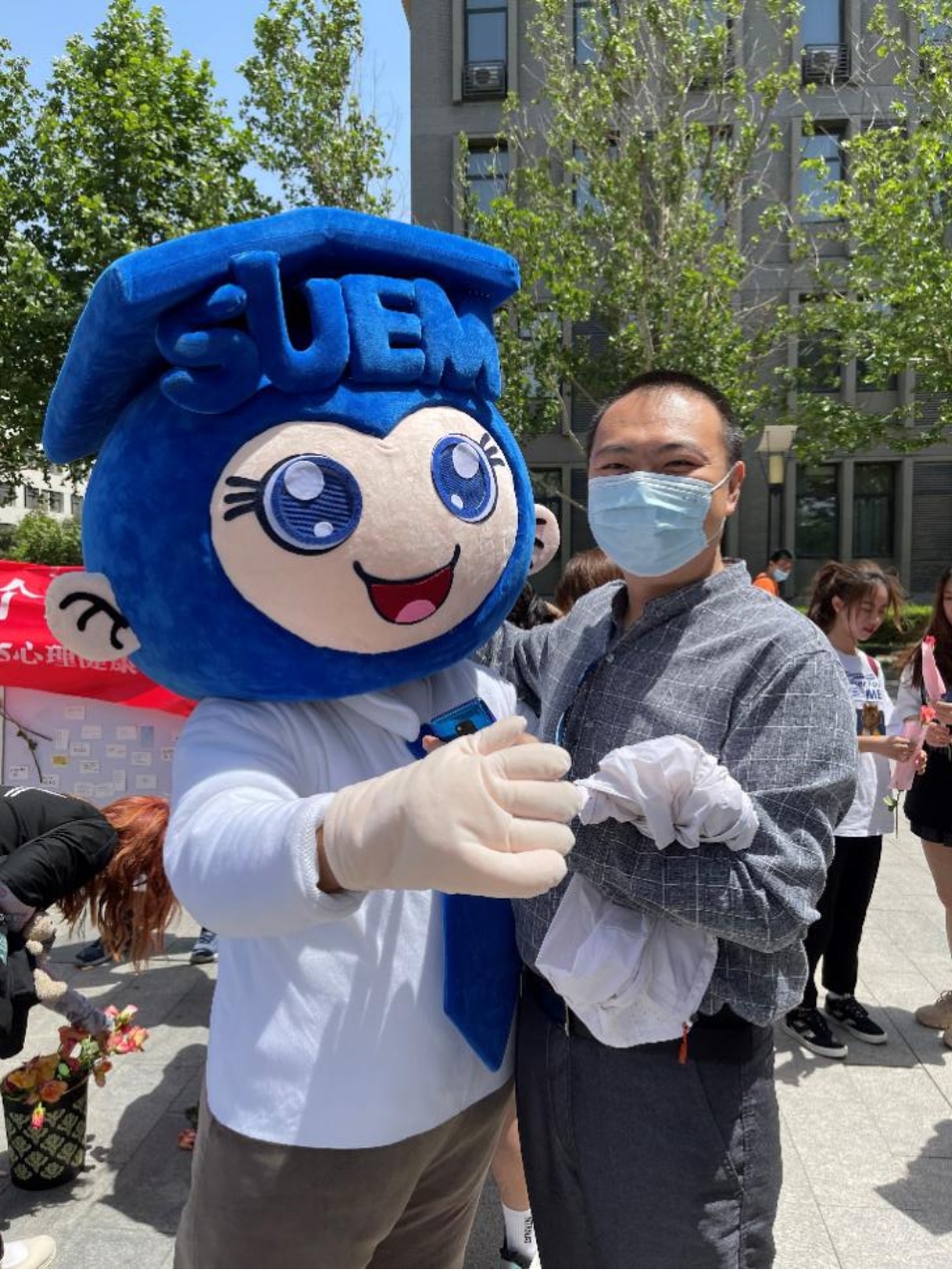 活动也吸引了老师们的参与。他们热情的与玩偶拥抱,与同学们一同送上祝福。