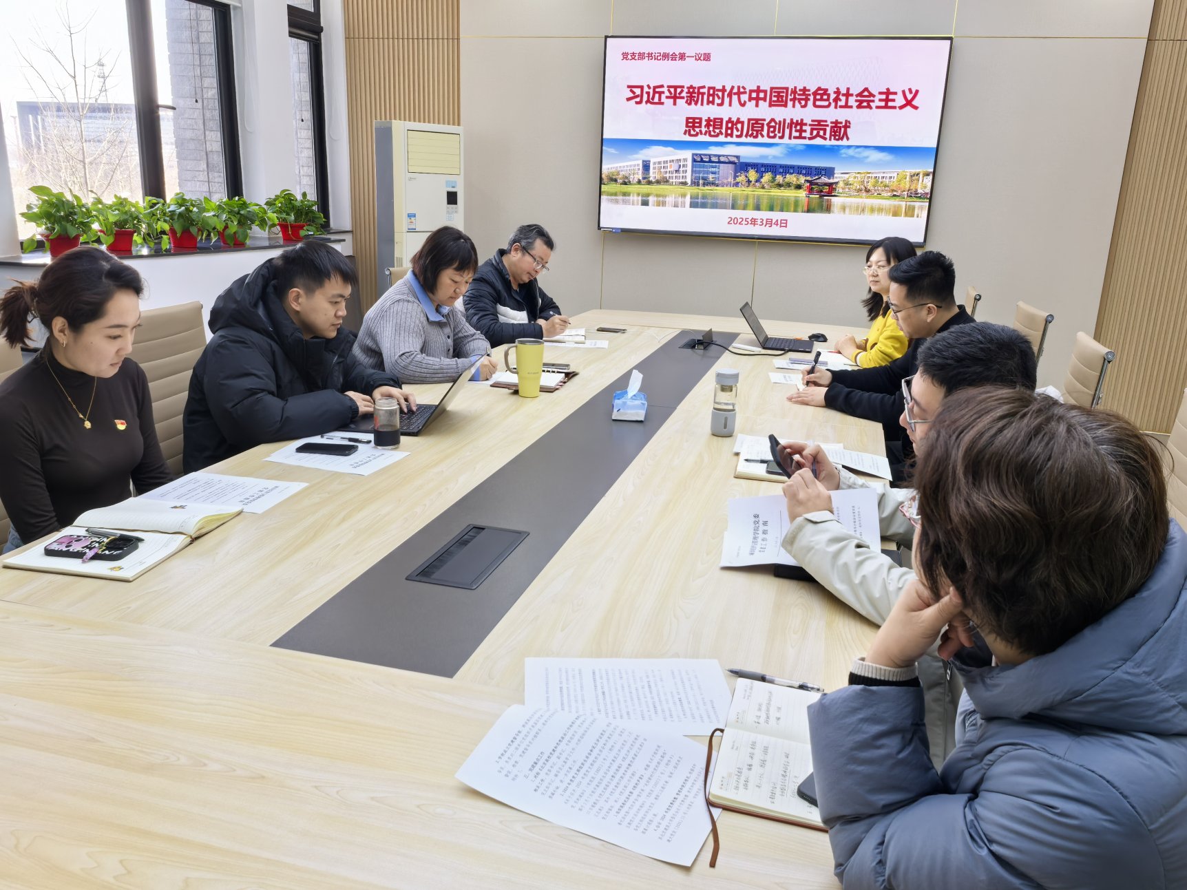 会议以 “第一议题” 开启,深入学习 “习近平新时代中国特色社会主义思想的原创性贡献”。通过对该思想在新时代观、“两个结合”、方法论和现代化理论等多方面的深入学习,参会人员领会到这一思想贯通马克思主义哲学、政治经济学、科学社会主义,实现了马克思主义的原创性丰富与发展。赵海云强调,各党支部需组织党员持续深化学习,将思想精髓转化为行动指南,切实做到学思用贯通、知信行统一。