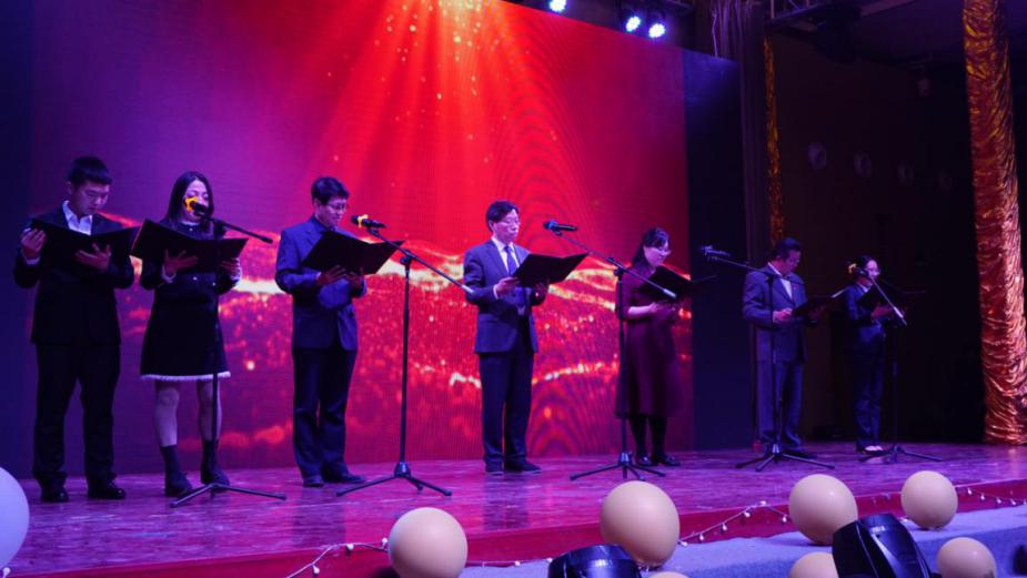 演出中,副校长李俊奇与百合漫画 领导、“青春榜样”获得学生一起进行了诗朗诵《没有共产党就没有新中国》,在中国共产党建党100周年之际,发出了师生共同的声音。