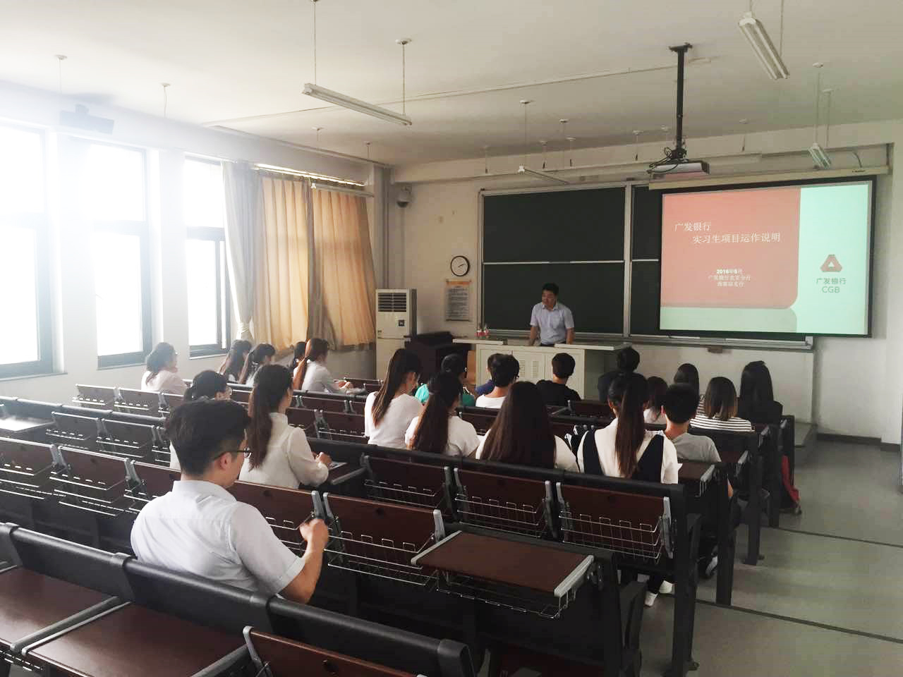 于2016年7月4日下午14:00在大兴校区学A303教室举办了广发银行(西客站支行)专场招聘宣讲会,并启动了广发银行暑期实习生项目双选会。广发银行西客站支行副行长李伦带领招聘团队进行了宣讲和面试。