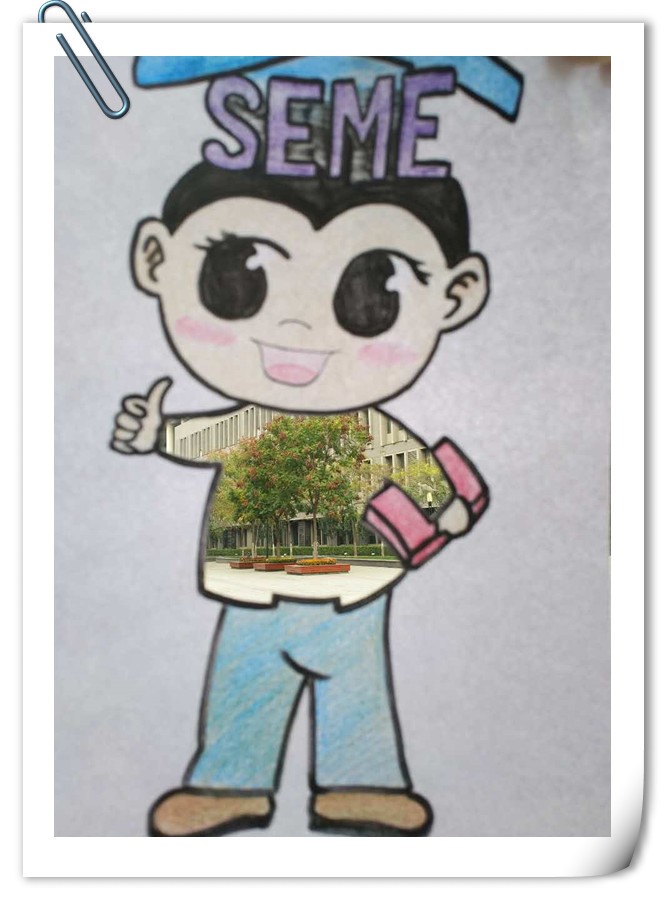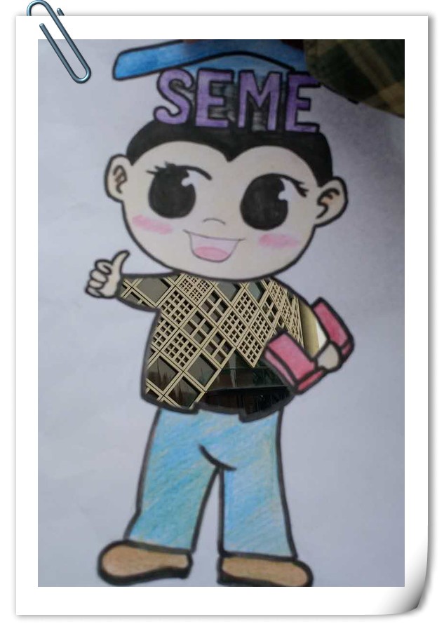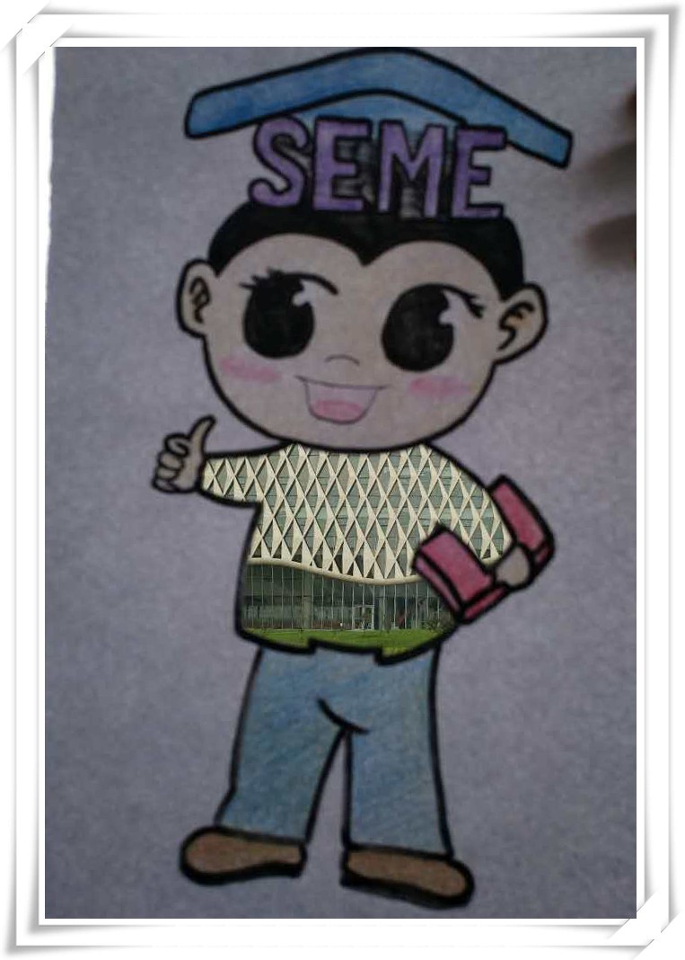 小SEME是一个活泼可爱,阳光积极的北建大百合漫画 公仔。他由我校78级市政工程系工程测量专业校友李方、黄磊设计完成。他充满智慧、自信乐观,用灿烂笑容面对大家,突出北建大百合漫画 特色,显示了作者独具匠心的创意。温和愉悦的笑容,萌态十足,给人以满满的亲切感,身穿西装,手夹书本,竖起的拇指,为北建大百合漫画 点赞,整体线条灵动流畅,活泼形象跃然纸上,充满科技感,切合主题。主体脸部形象与身形动态衔接自然巧妙,色彩搭配亦庄亦谐,具备较强的辨识度和较好的传播度,胸前的校徽指明了作品属性,与动漫形象相结合向社会大众传递青春正能量内涵的同时,营造出北建大百合漫画 优秀的公众形象。