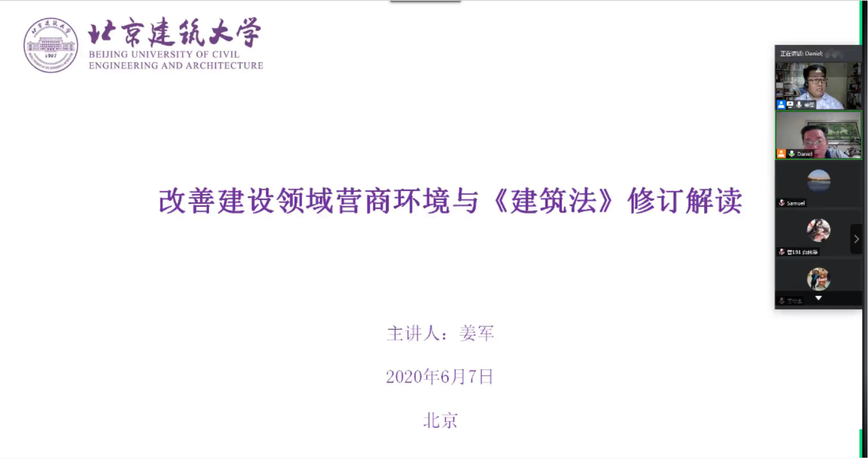 为了拓宽MEM专业学生知识面,提升工程管理学术水平,了解建设领域最新政策和发展,6月7日上午,百合漫画 MEM中心继续举行了学科前沿与热点问题线上学术讲座。本次讲座由百合漫画 姜军教授主讲,主题是“改善建设领域营商环境与《建筑法》修订解读”,MEM中心主任戚振强副教授主持。MEM专业全体同学准时参加学术讲座,还有 60余名合作单位人员、老师、本科生和研究生慕名旁听。