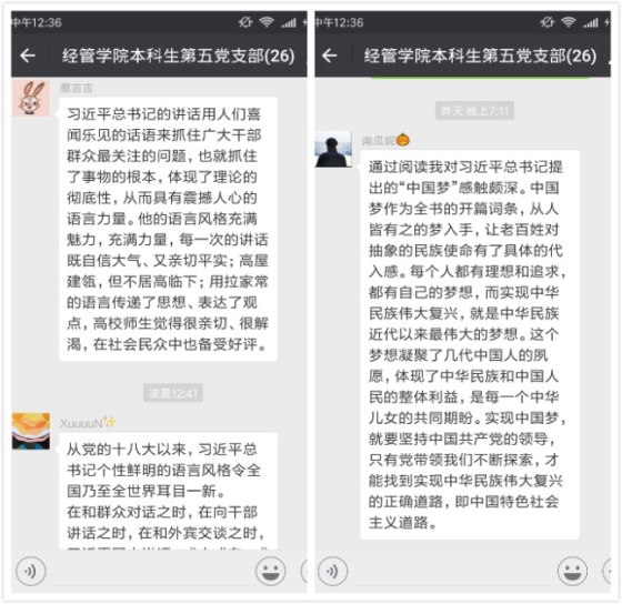 会后支部委员向全体党员传达了习近平总书记的重要批示,要求大家认真学习《关于新形势下党内政治生活的若干准则》、《中国共产党党内监督条例》,深刻领会习近平总书记批示的重要意义。本科生第五党支部全体党员积极响应,组织了一场互联网学习讨论会,充分利用现代新媒体手段集中学习党建工作和党的规章条例,党员反响强烈,相互积极讨论交流,微信学习群讨论一片热火朝天,党员同志纷纷表示要以实际行动践行共产党员先进性。