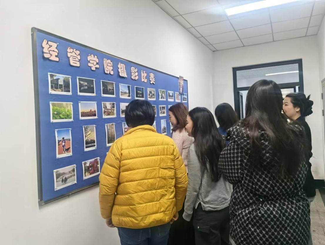 摄影作品在学A楼三层连廊处展出,引起了师生关注和评论。