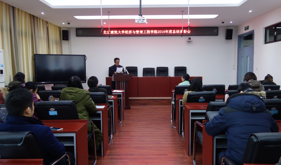 2017年1月11日,经济与管理工程学院于学院楼A座413会议室召开了2016年度总结表彰会,会议的主题是"总结过去,展望未来,榜样引领,促进发展”。学院领导班子成员和全体教职工参加了本次会议。会议由学院党委书记彭磊主持。