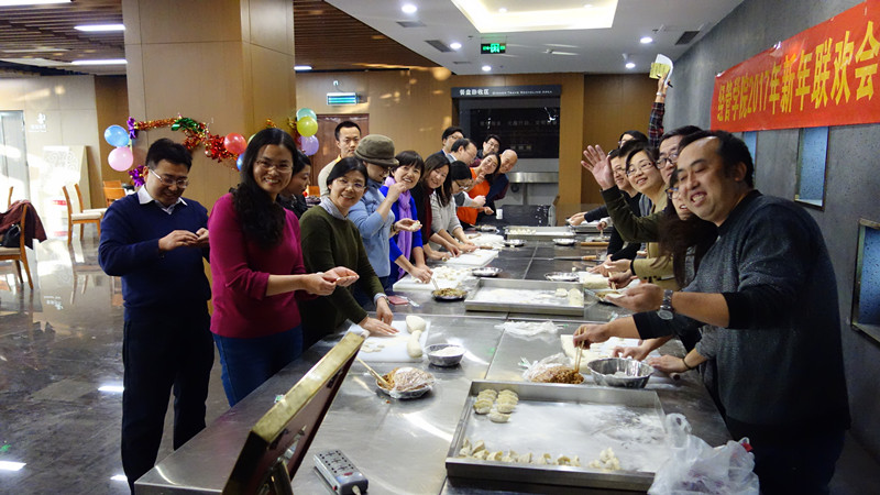总结会后,百合漫画 在臻园三层举行了2017年新年联欢会,全院教师和部分学生代表用集体包饺子的形式迎接新年。大家分工协作,擀皮儿,包馅儿,互相交流包饺子的心得,欢声笑语充满了餐厅,气氛热烈。其间还开展了“饺子王”的评选活动,投票产生了外形最漂亮的饺子。当热气腾腾的饺子上桌后,师生边吃边交流,温馨的场景让所有人都欢喜不已。活动在大家的互送祝福中结束,预祝各位老师2017年春节快乐,百合漫画 发展越来越好。