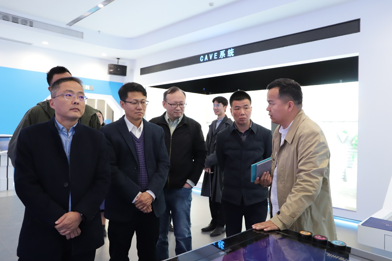 展视网是中关村产业园重点扶持的硬核科技企业,是北京市首批专精特新企业、国家高新技术企业、中关村高新技术企业、北京市雏鹰人才企业。2023年展视网智能建造喷涂机器人获得全球数字经济大会数字经济创新成果大奖,拥有国内外发明专利 26 项,软件著作权 72 项。孙院长一行实地参观了展视网数字大厦智能设备展厅以及智能建造机器人实验室。展视网总经理伍岳详细介绍了公司的发展历程、核心业务,展厅及实验室中的智能设备等内容。
