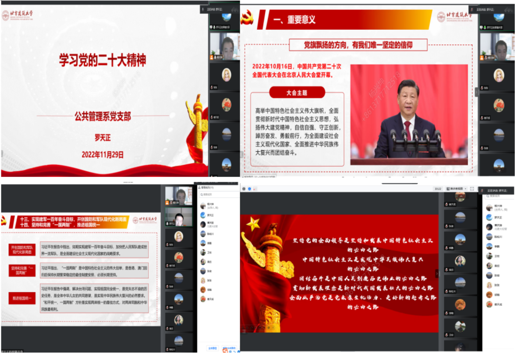 按照学院党委的统一部署和安排,11月29日,公共管理系党支部组织全体党员在线集体学习党的二十大精神,支部书记杨兴坤主持学习。