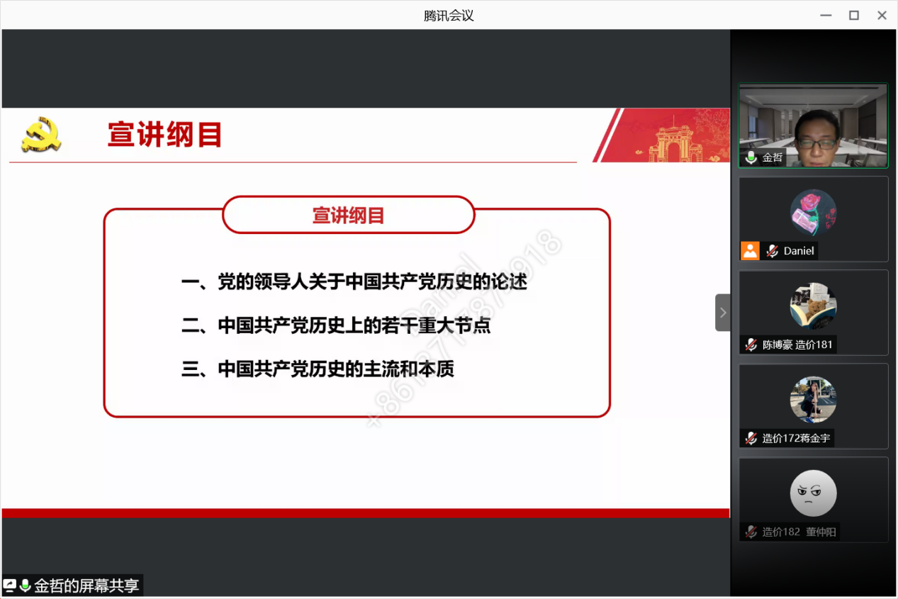 参加本次主题党日活动的还有工程造价专业本科生党支部全体党员。在金博士的主题报告之后,党员进行了分享了学习党史的心得体会并且和金博士进行了交流探讨。