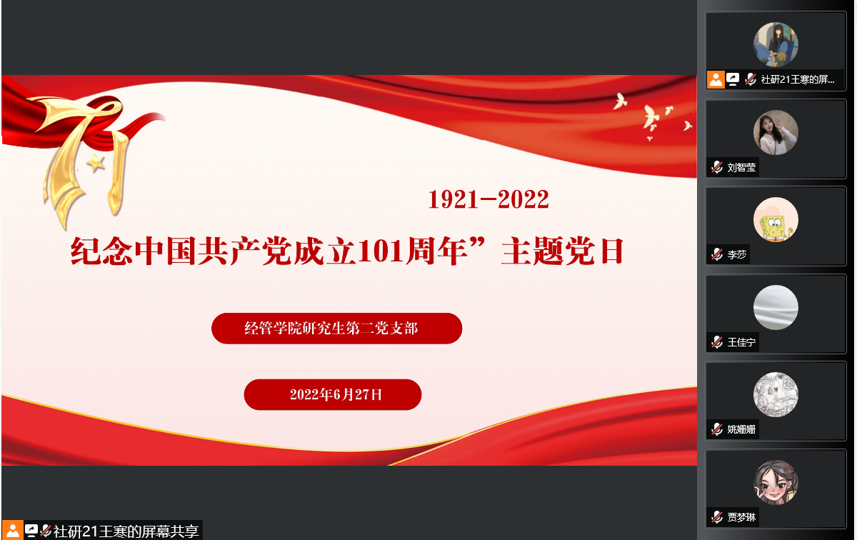 学院党委高度重视。为确保各支部高质量高标准开展好本次活动,学院党委精心研究并制定了《关于做好庆祝中国共产党成立101周年有关工作的通知》(经管党字〔2022〕13 号)文件,用于指导和规范各支部活动开展。并召开党建工作例会,进行了专门部署。