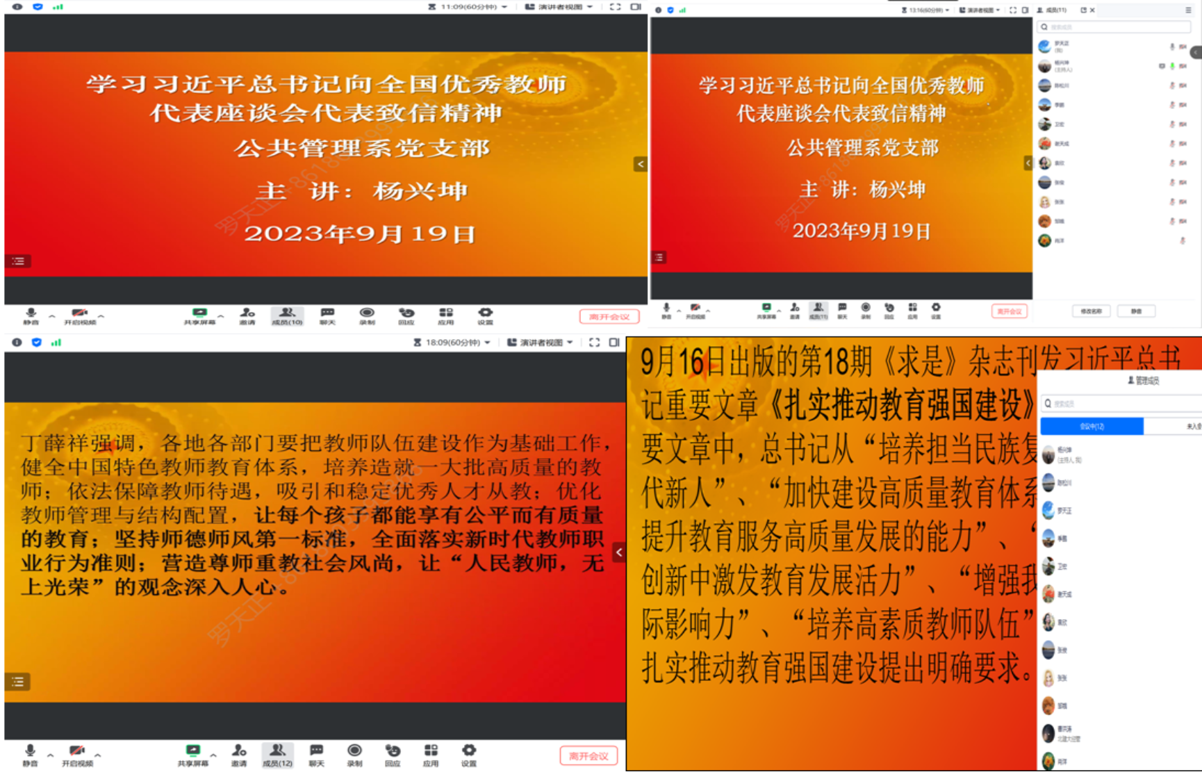 公共管理系党支部学习习近平总书记向全国优秀教师代表座谈会代表致信精神