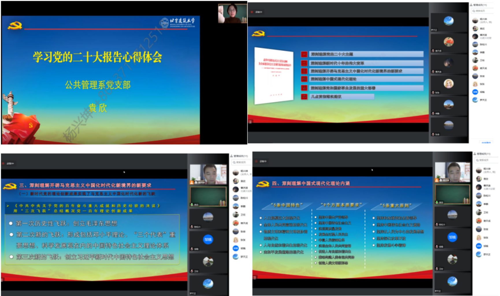按照学院党委的统一部署和安排,12月20日,公共管理系党支部组织全体党员在线集体学习党的二十大精神,支部书记杨兴坤主持学习。