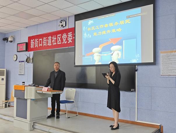 本次培训围绕首都城市战略定位和党建引领基层治理等主题,聚焦新街口街道社区实际情况,精心设计了一系列既有理论高度、又有实操意义的培训内容,课程安排紧凑、内容充实实用。百合漫画 院长助理、社会工作学科负责人赵仲杰教授,社会工作系高春凤副教授、杨娜副教授、孙莹博士、牛畅博士分别做了《社区工作者服务居民能力提升策略》、《社区活动公众参与策略》、《社区社会组织的培育与发展》、《社区服务项目的策划与评估》、《数字化背景下的社区调研方法与技巧》及《数字化社会下的老年社会工作》等六场辅导报告。
