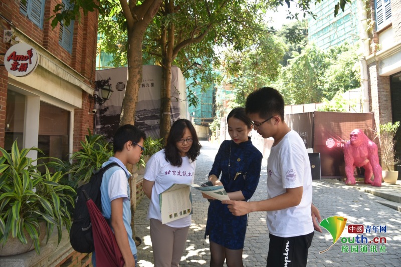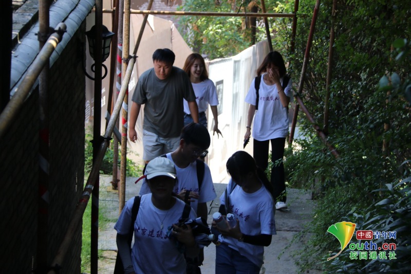 图为实践团在古厝洋房的改造修缮施工现场。实践团成员们忍受着福州零上三十几度的高温,在烈日暴晒下坚持于烟台山上各个项目一线进行实地调研,依然精神饱满,体现了新时代青年的风采。中国青年网通讯员 蒙达 摄