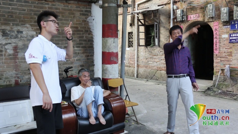 图为居住在仓前社区的老人向实践团介绍烟台山古厝洋房百年来的各种变化。当地老人的介绍,在一定程度上加深了实践团对烟台山历史沿革的认知,更好地帮助实践团勾勒福州近代城市建筑的发展轮廓,总结福州近代城市建筑的特征。中国青年网通讯员 李佳仪 摄
