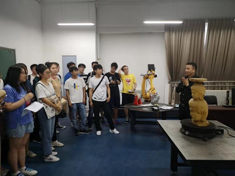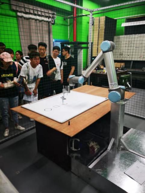 7月1日下午,参观了智慧城市实验室的机器人实验室。主要以“智能”为主题,通过工业机器人技术和动作捕捉技术,来进行未来城市的构建,比如去一些有毒有害的工作场合进行工作。实验室正在研究的课题是动作捕捉技术,通过对人的动作进行捕捉,并使机器人仿照做出动作,或者是完成设置好的任务。